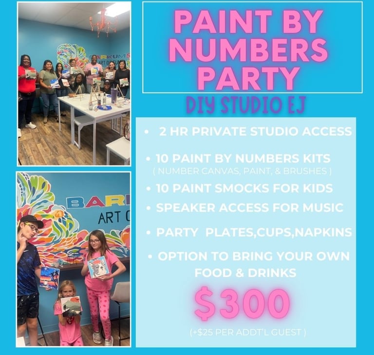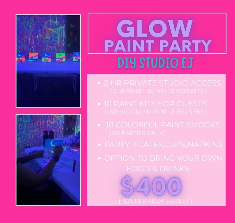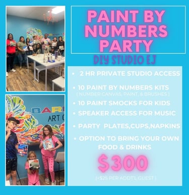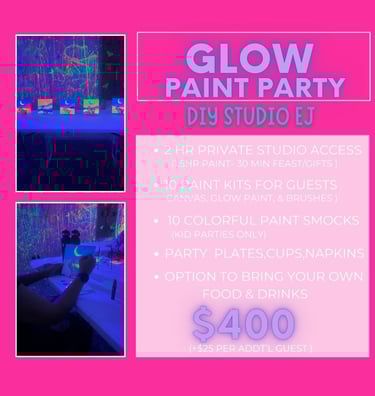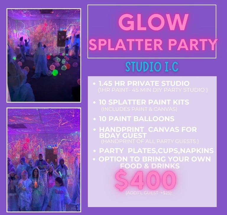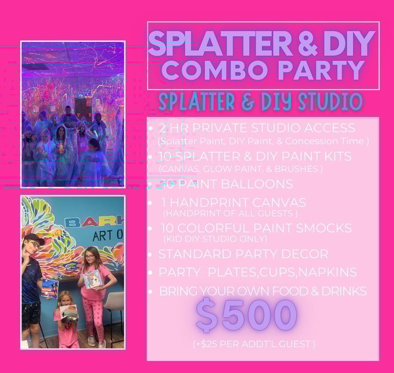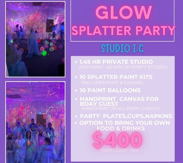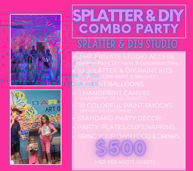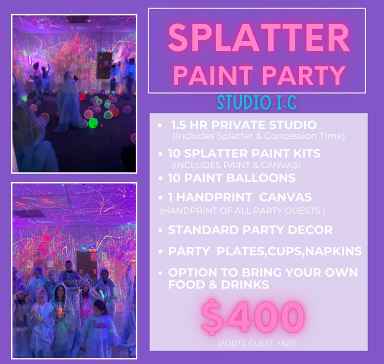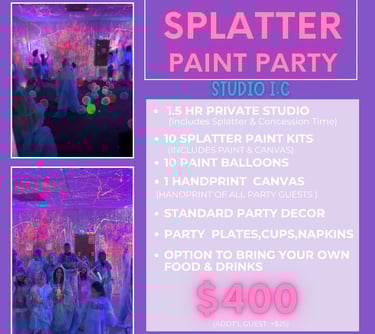 Our Paint & Splatter Studio Parties are an unforgettable experience and the ultimate way to celebrate that special day!