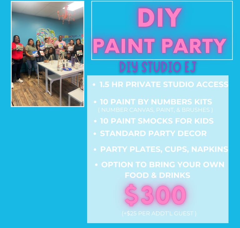 Our Paint & Splatter Studio Parties are an unforgettable, mess-friendly experience and the ultimate way to celebrate birthdays, groups, and special occasions in Jacksonville.